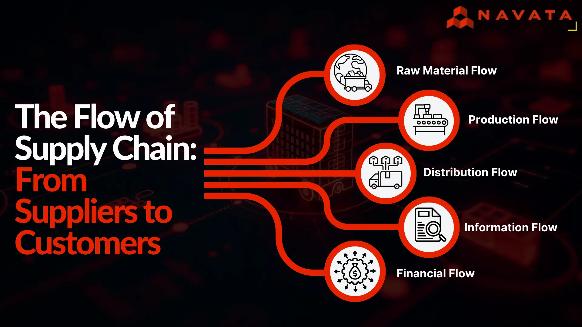 Physical goods flow – Moving raw materials to production facilities and finished products to customers.